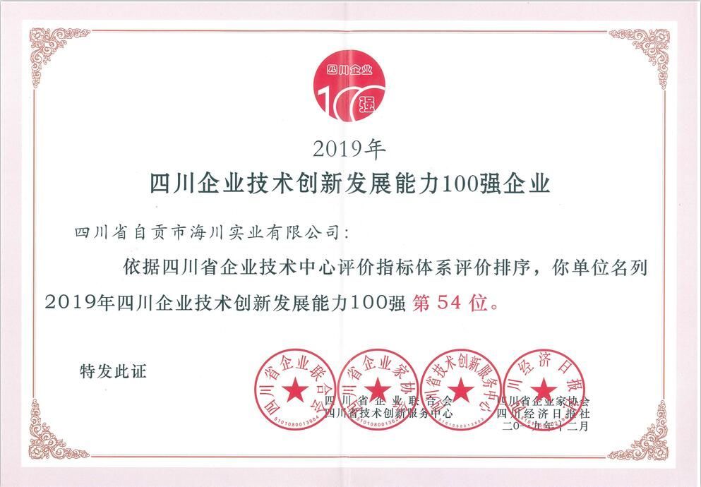 2019年四川省企業(yè)技術(shù)創(chuàng)新發(fā)展能力100強(qiáng)